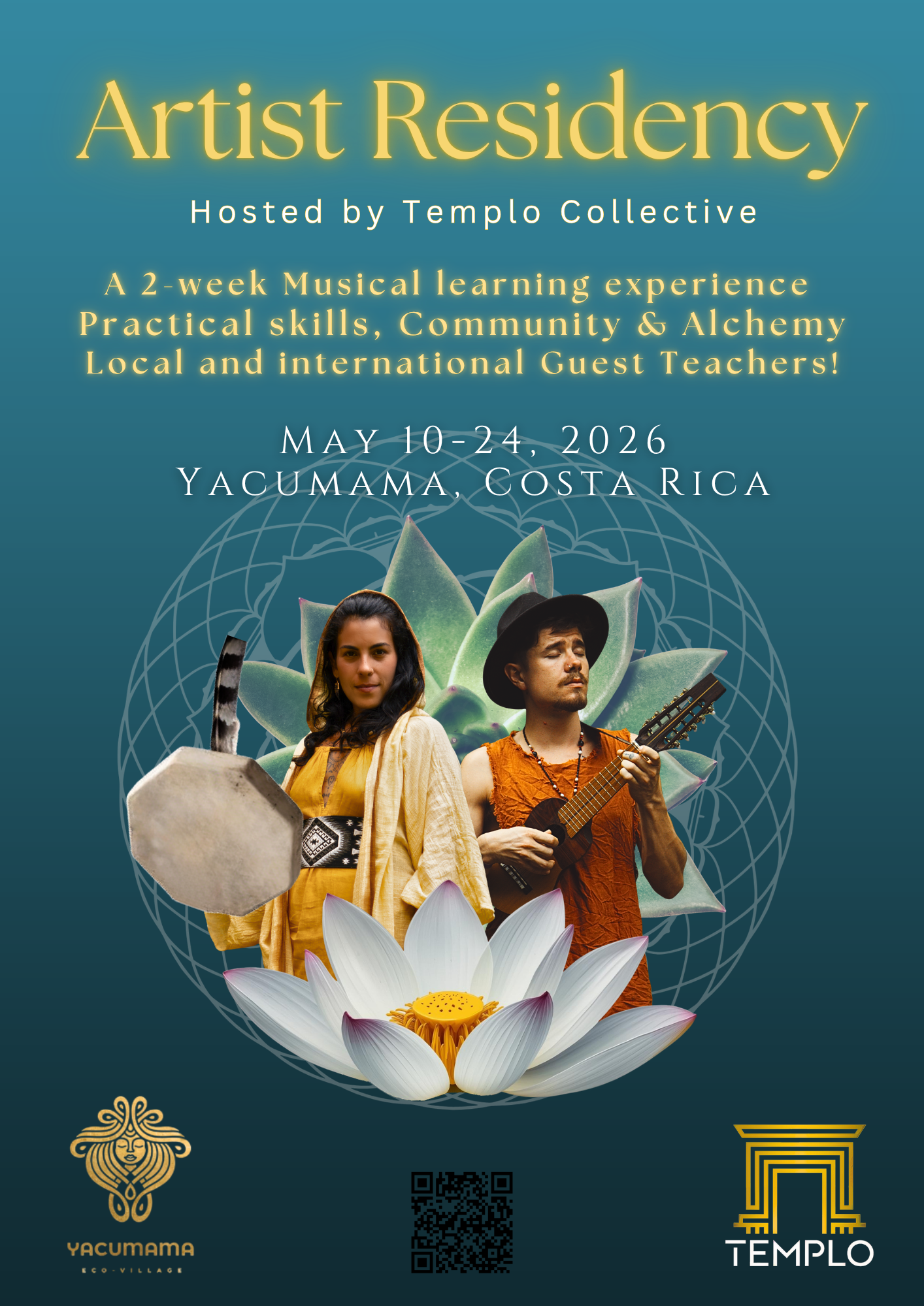 In this 2 - week immersive container we will explore the different facets of musical artistry & mystery teachings. From instrumental skills, vocal technique, song writting and composition skills, all the way to healing/therapeutic practices, ritual and mystery teachings related to sound, frequencies and ancient traditions.